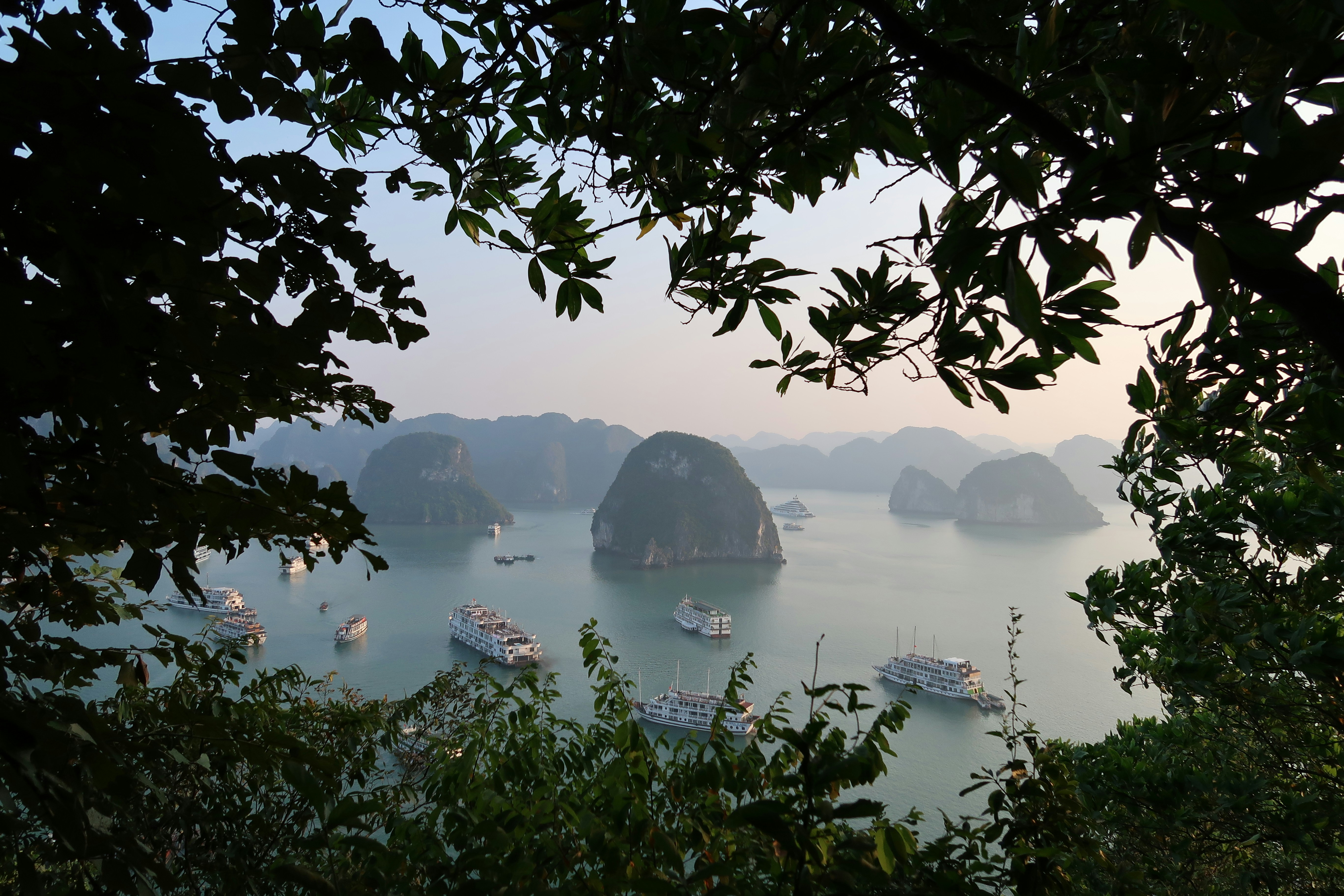 Verdant cliffs rise above winding rivers and quiet villages. The air is soft with mist and birdsong, a scene that captures the still beauty and spirit of Southeast Asia.